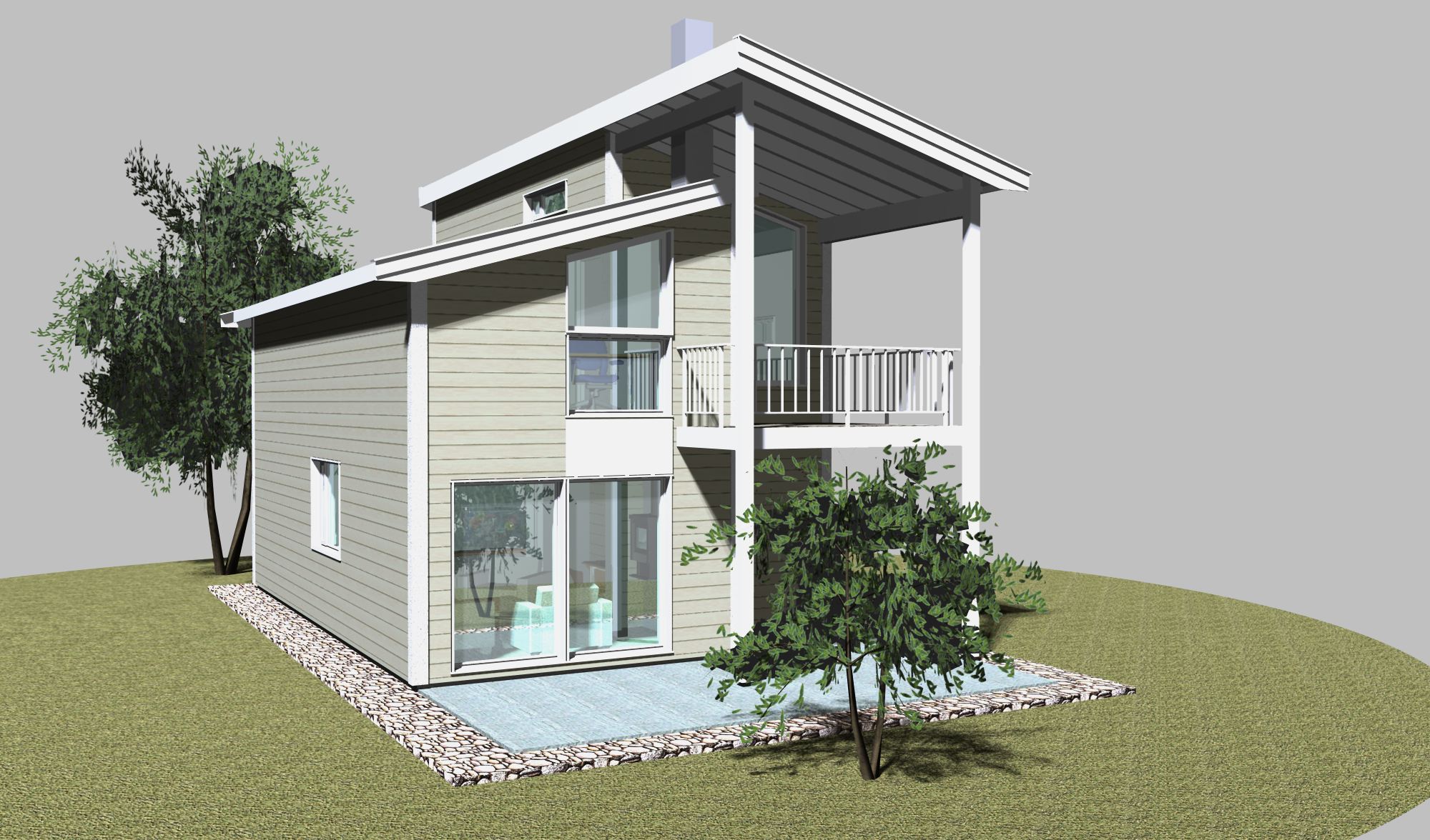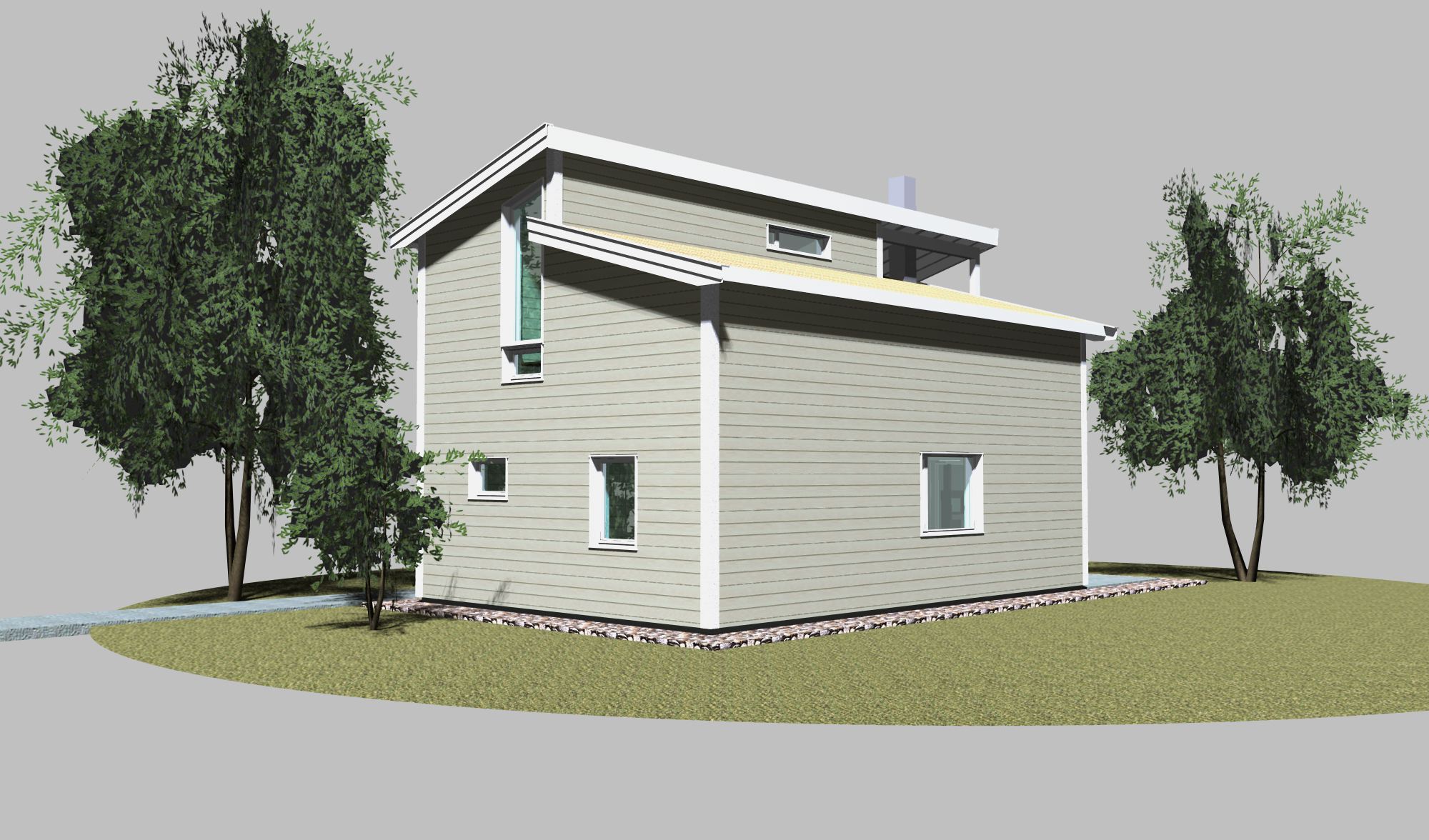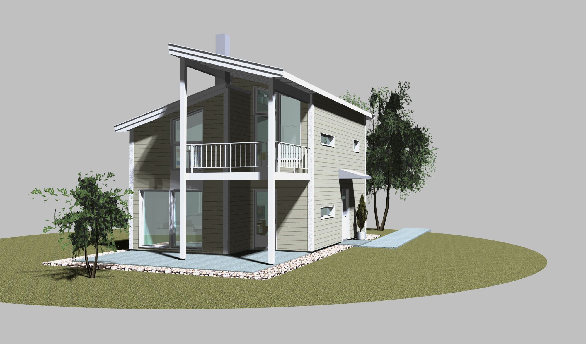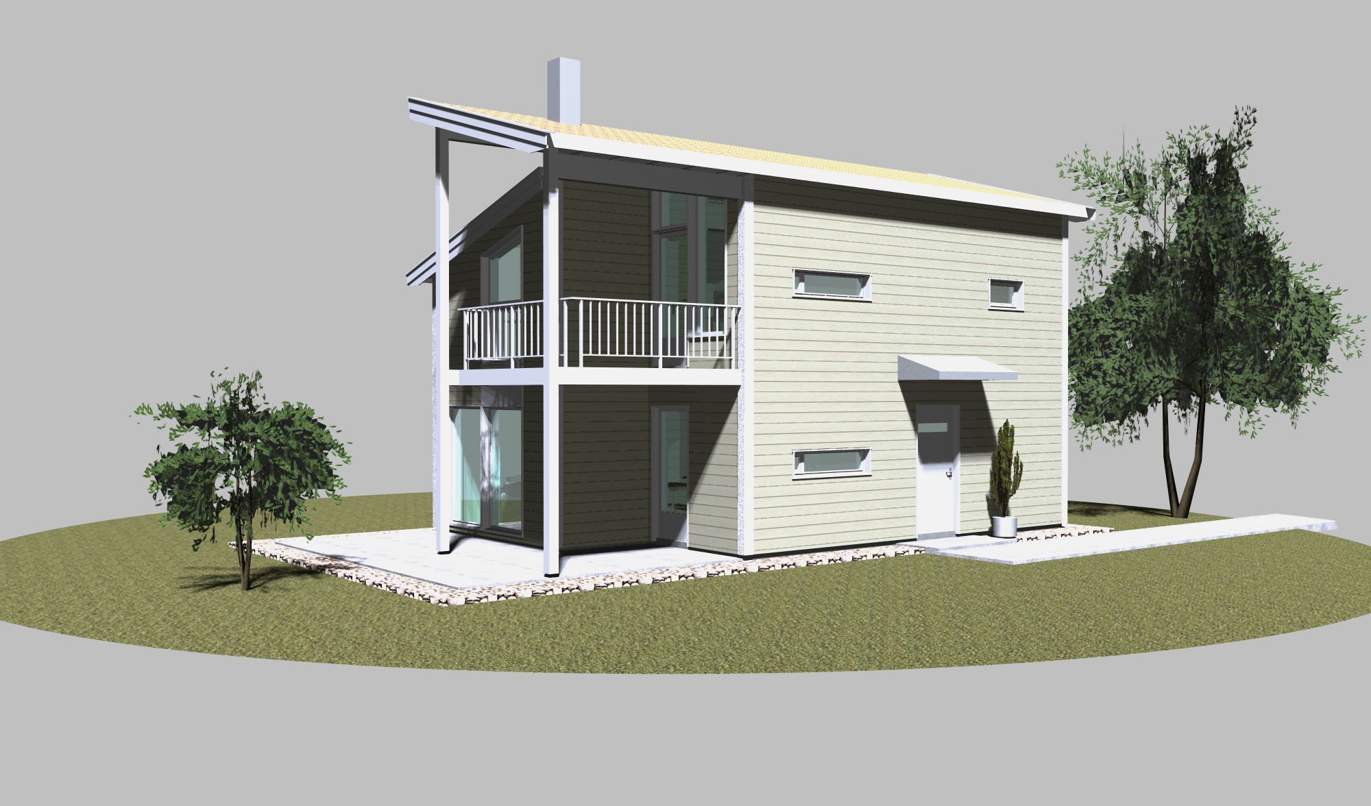 Minibo Trend appellerer til de som ønsker seg den spesielle, moderne og effektive boligen. Den spesielle stilen gir boligen et kontinentalt preg og de høye kneveggene gjør også 2 etasje til arealeffektive oppholdsrom. Trend gir deg mye plass på en liten grunnflate, med to stuer og tre soverom. Store vindusåpninger gir et lyst og behagelig innemiljø og økt romfølelse. Denne modellen har gode uteoppholdsareal med god plass utenfor stuen og en romslig overbygget altan i 2 etasje. – Et spennende hus med fasinerende arkitektur.